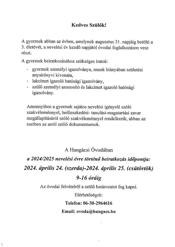 Helye: Hangácsi Óvoda (Hangács, Petőfi u.