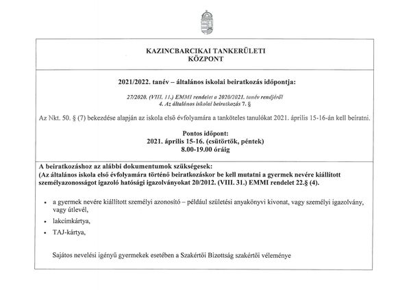 tanév általános iskolai beiratkozás pontos időpontja