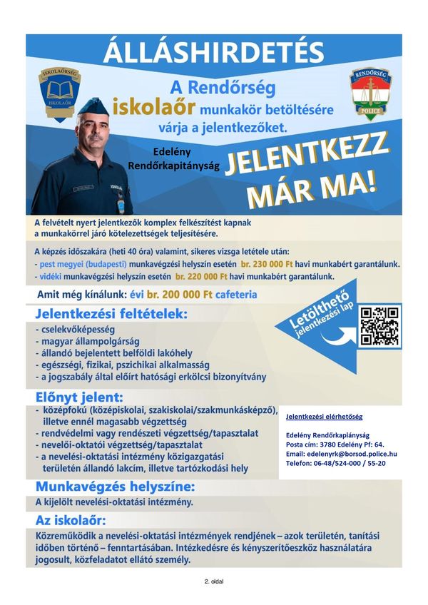 ÁLLÁSHIRDETÉS-ISKOLAŐR